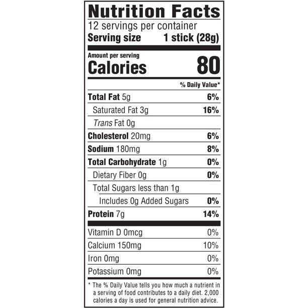 Polly-O Mozzarella String cheese are the classic mozzarella cheese stick you know and love! Only premium quality milk and cheese is used to prepare this delicious string cheese. These creamy and delicious cheese sticks contain 7 grams of protein and 80 calories per serving, see nutrition information for saturated fat content. These fun flavorsome cheese sticks make a great snack!